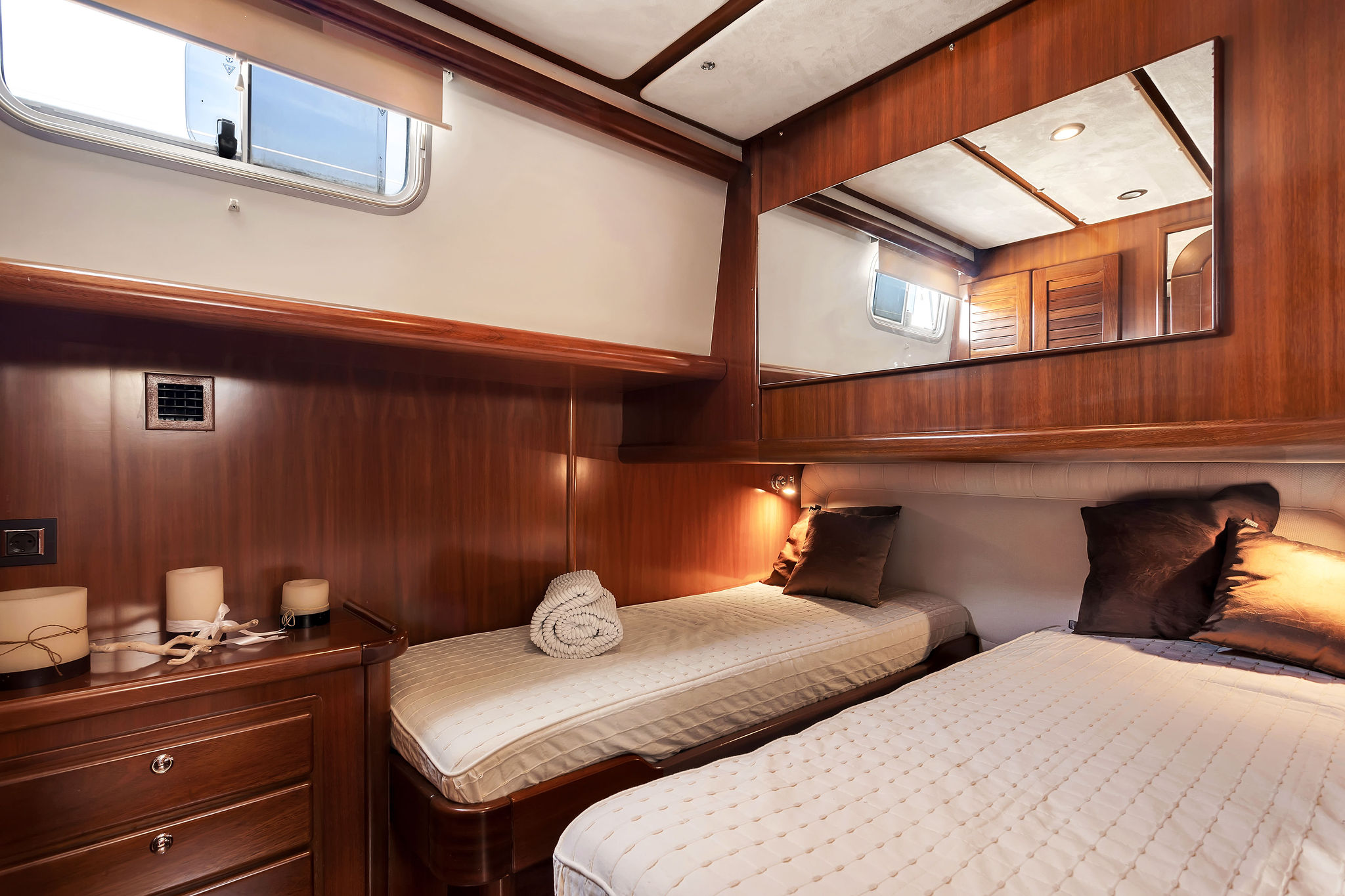 The boat had a complete refit in 2011 with tons of new accessories and furniture with all new kitchen and professional equipment Miele.
