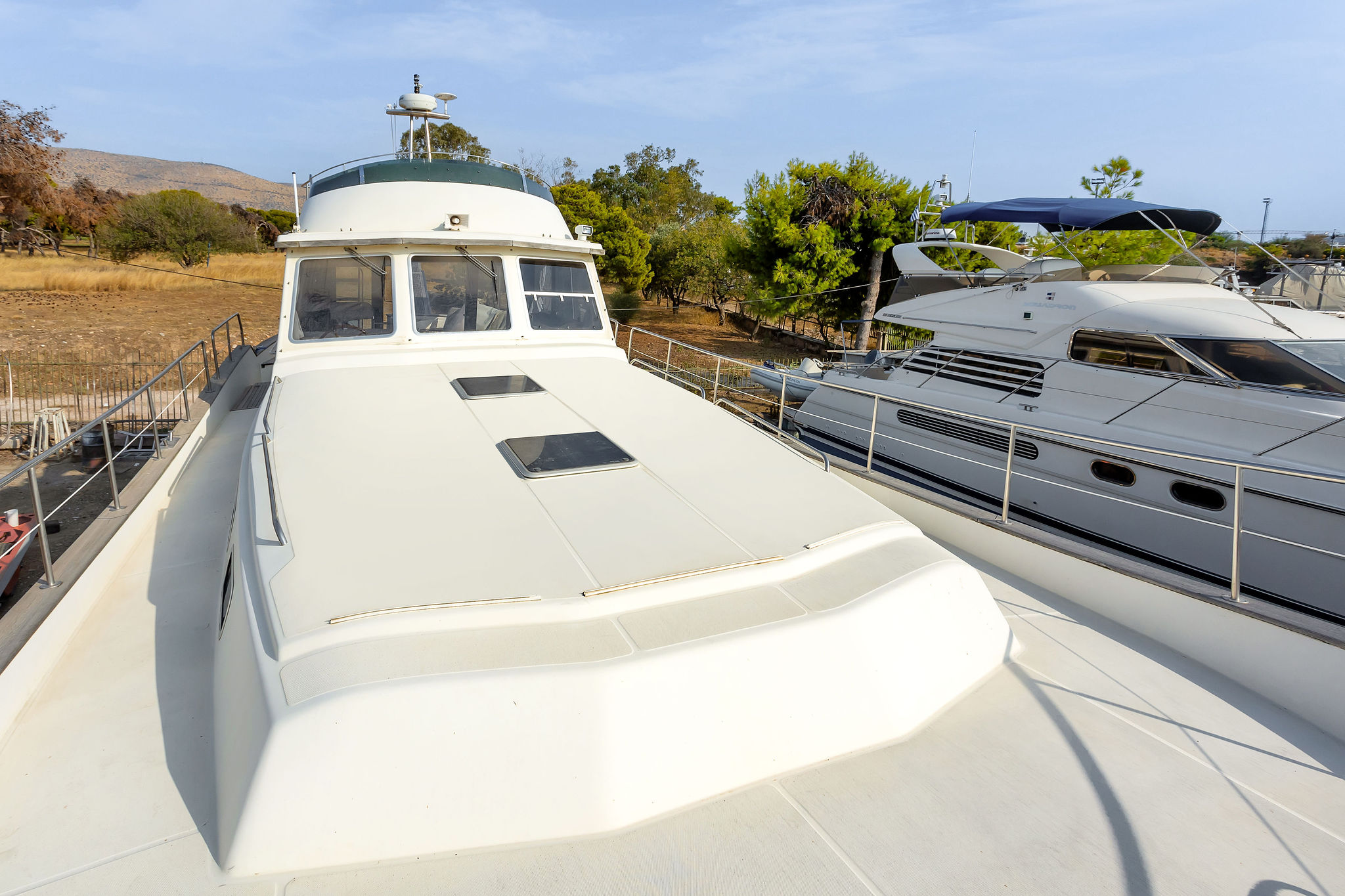 This Menorquin 180, manufactured in 2004, is ready for sale. Located in Greece near Athens. It features an overall length of 18.40 meters and a beam of 5.50 meters.